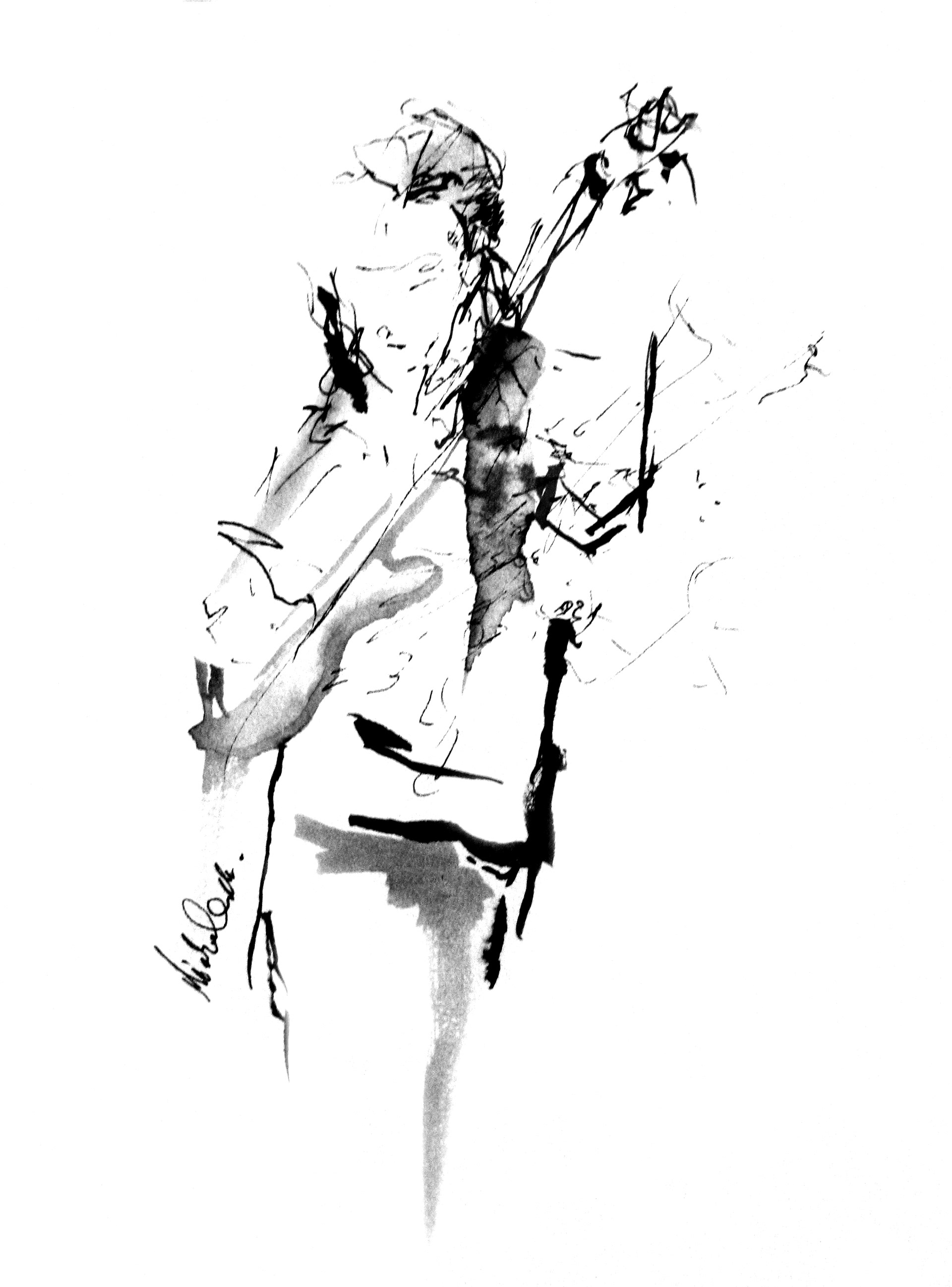 Bassist, 10"x7.5", ink and pen on paper, 2007
